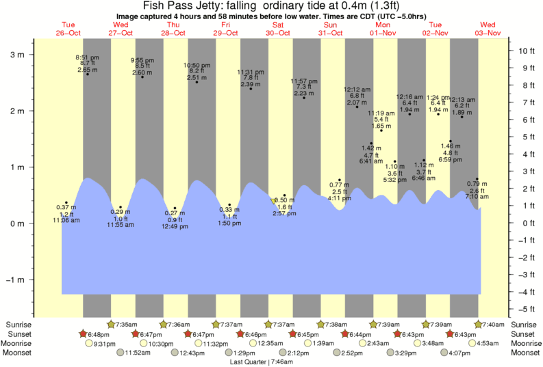 Image captured 4 hours and 58 minutes before low water (falling ordinary tide). Tide height was 0.4m (1.3 ft). Range 4.13m (13.5 ft). Toggle tide graph