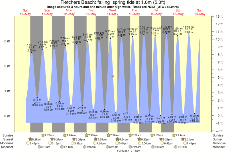 Forecast wind and swell just offshore from Fletchers Beach around the time the photo was taken