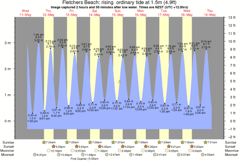 Forecast wind and swell just offshore from Fletchers Beach around the time the photo was taken