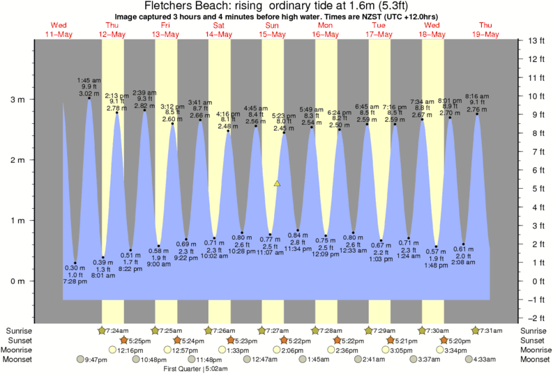 Image captured 3 hours and 4 minutes before high water (rising ordinary tide). Tide height was 1.6m (5.3 ft). Range 3.91m (12.8 ft). Toggle tide graph