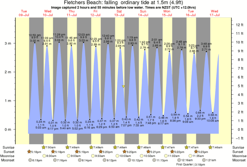 Image captured 2 hours and 55 minutes before low water (falling ordinary tide). Tide height was 1.5m (4.9 ft). Range 3.68m (12.1 ft). Toggle tide graph