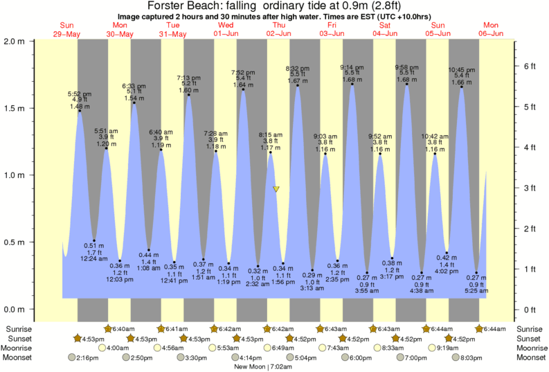 Image captured 2 hours and 30 minutes after high water (falling ordinary tide). Tide height was 0.9m (2.8 ft). Range 1.76m (5.8 ft). Toggle tide graph