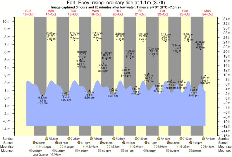 Image captured 3 hours and 26 minutes after low water (rising ordinary tide). Tide height was 1.1m (3.7 ft). Range 12.91m (42.4 ft). Toggle tide graph