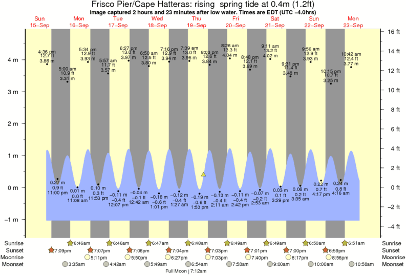 Forecast wind and swell just offshore from Frisco Pier/Cape Hatteras around the time the photo was taken