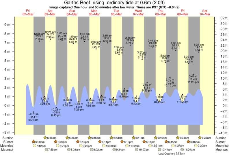 Image captured One hour and 50 minutes after low water (rising ordinary tide). Tide height was 0.6m (2.0 ft). Range 10.96m (36.0 ft). Toggle tide graph