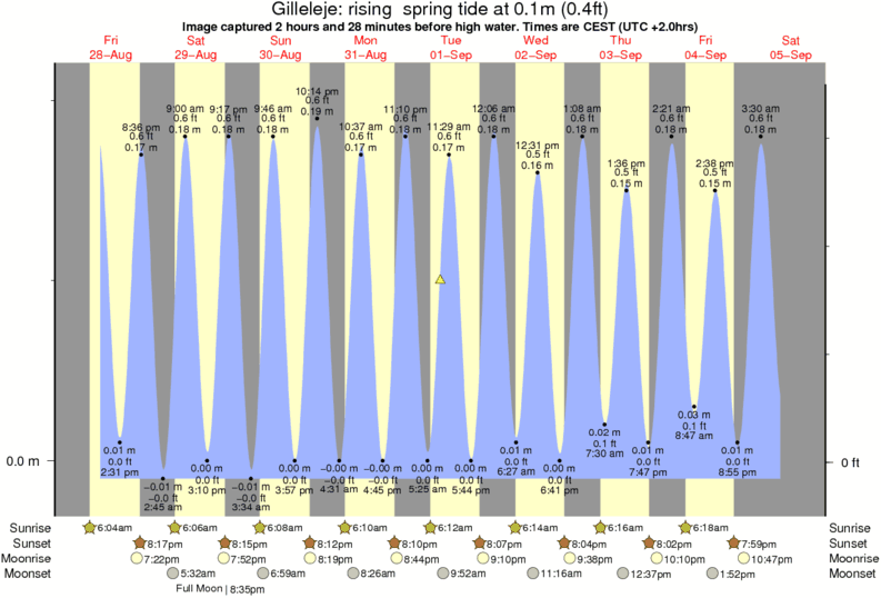Image captured 2 hours and 28 minutes before high water (rising spring tide). Tide height was 0.1m (0.4 ft). Range 0.21m (0.7 ft). Toggle tide graph