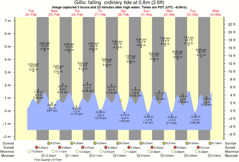 Image captured 3 hours and 22 minutes after high water (falling ordinary tide). Tide height was 0.8m (2.6 ft). Range 7.97m (26.1 ft). Toggle tide graph