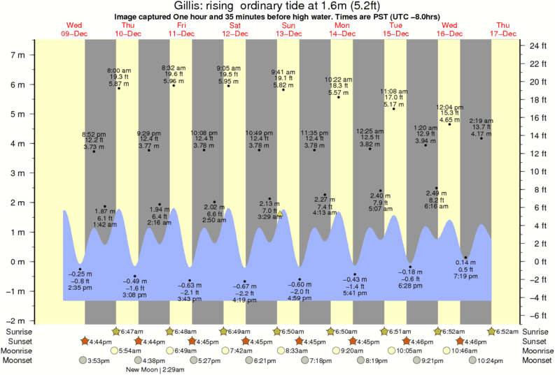 Image captured One hour and 35 minutes before high water (rising ordinary tide). Tide height was 1.6m (5.2 ft). Range 8.04m (26.4 ft). Toggle tide graph