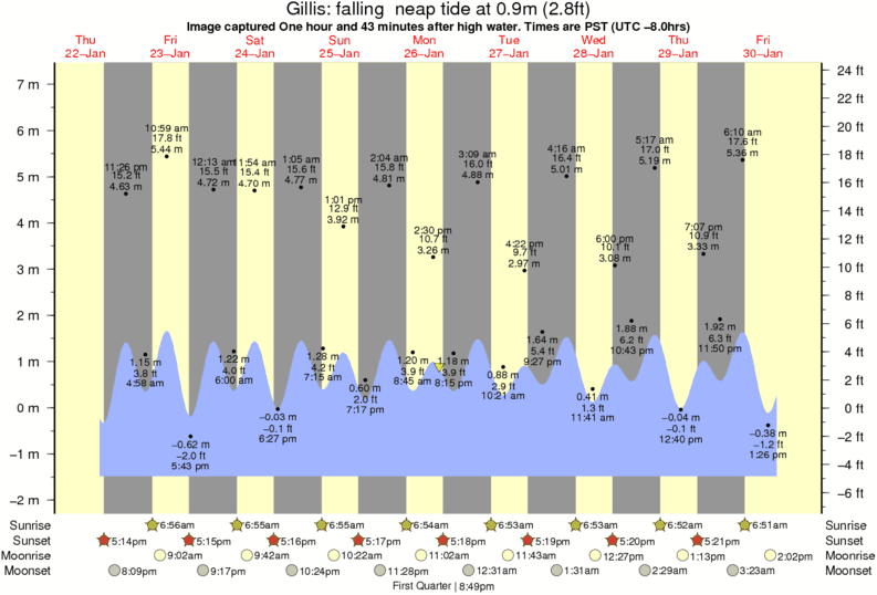 Image captured One hour and 43 minutes after high water (falling neap tide). Tide height was 0.9m (2.8 ft). Range 8.14m (26.7 ft). Toggle tide graph
