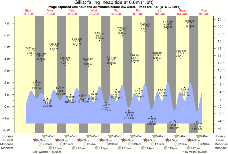 Image captured One hour and 38 minutes before low water (falling neap tide). Tide height was 0.6m (1.8 ft). Range 8.21m (26.9 ft). Toggle tide graph