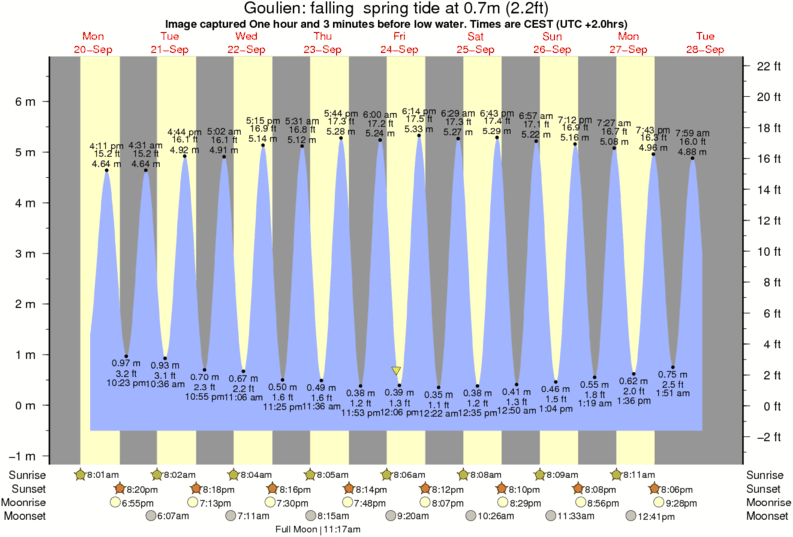 Image captured One hour and 3 minutes before low water (falling spring tide). Tide height was 0.7m (2.2 ft). Range 6.72m (22.0 ft). Toggle tide graph