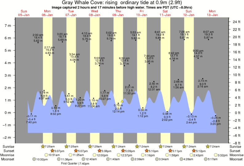 Forecast wind and swell just offshore from Gray Whale Cove around the time the photo was taken