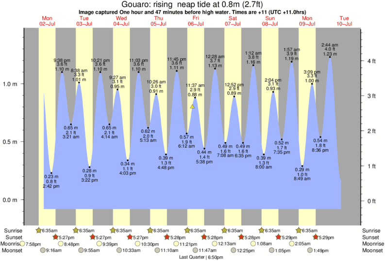 Image captured One hour and 47 minutes before high water (rising neap tide). Tide height was 0.8m (2.7 ft). Range 1.42m (4.7 ft). Toggle tide graph