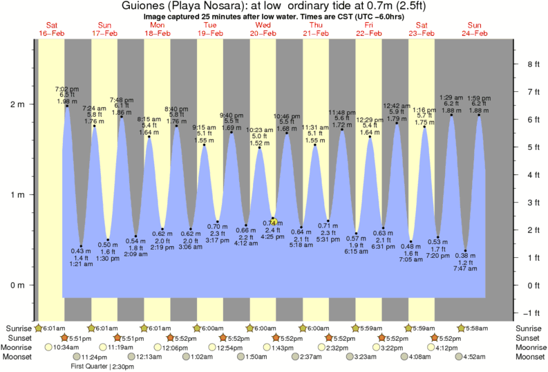 Forecast wind and swell just offshore from Guiones around the time the photo was taken
