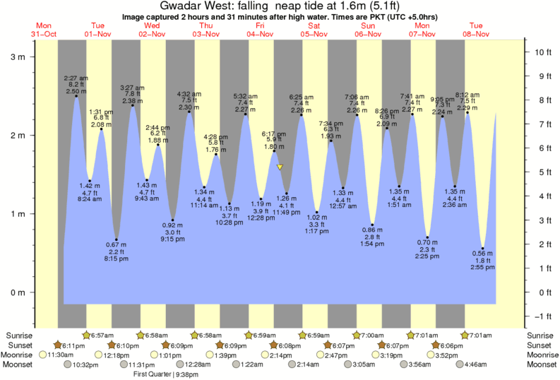 Forecast wind and swell just offshore from Gwadar West around the time the photo was taken