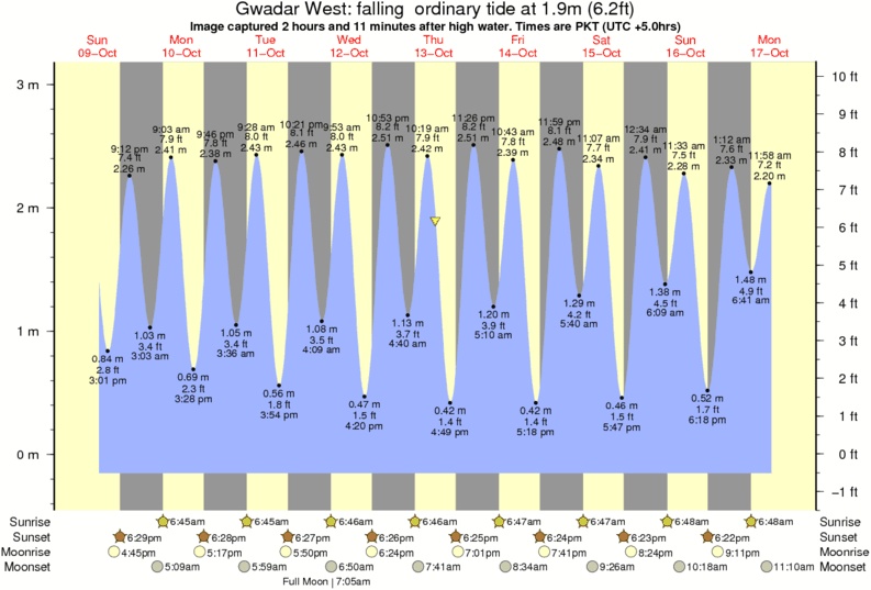 Forecast wind and swell just offshore from Gwadar West around the time the photo was taken
