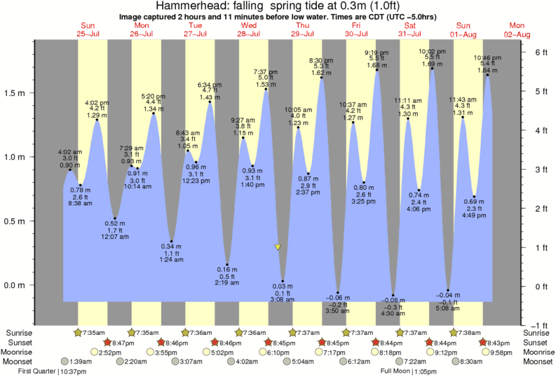 Image captured 2 hours and 11 minutes before low water (falling spring tide). Tide height was 0.3m (1.0 ft). Range 1.86m (6.1 ft). Toggle tide graph