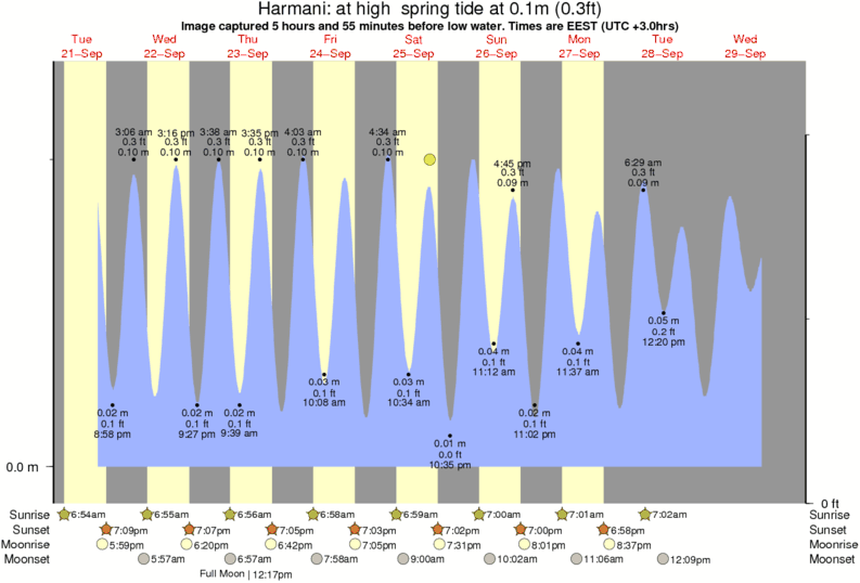 Image captured 5 hours and 55 minutes before low water (at high spring tide). Tide height was 0.1m (0.3 ft). Range 0.12m (0.4 ft). Toggle tide graph
