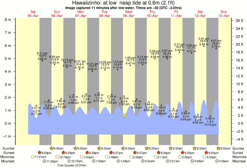 Image captured 11 minutes after low water (at low neap tide). Tide height was 0.6m (2.1 ft). Range 8.17m (26.8 ft). Toggle tide graph