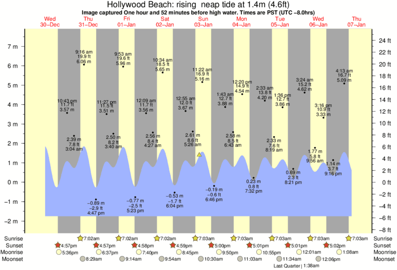 Forecast wind and swell just offshore from Hollywood Beach around the time the photo was taken