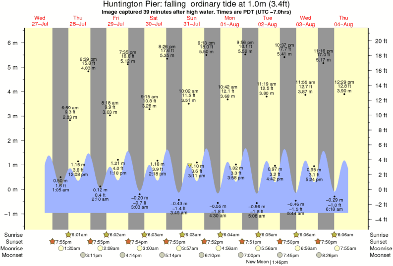 Forecast wind and swell just offshore from Huntington Pier around the time the photo was taken