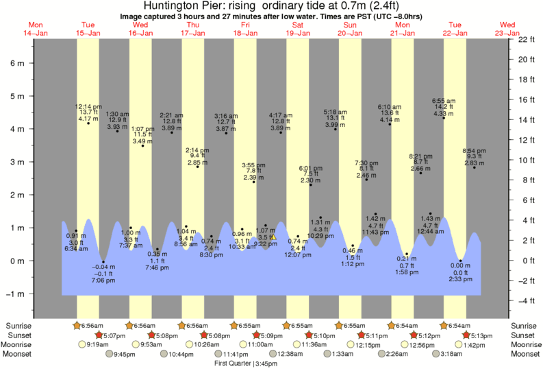 Forecast wind and swell just offshore from Huntington Pier around the time the photo was taken