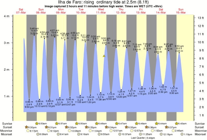 Image captured 2 hours and 11 minutes before high water (rising ordinary tide). Tide height was 2.5m (8.1 ft). Range 3.31m (10.9 ft). Toggle tide graph