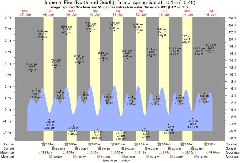 Forecast wind and swell just offshore from Imperial Pier (North and South) around the time the photo was taken