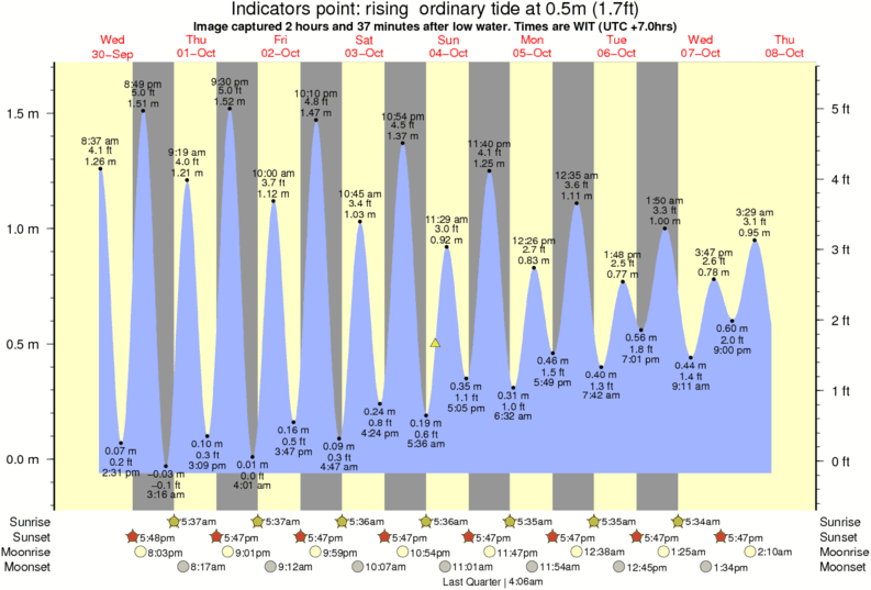 Image captured 2 hours and 37 minutes after low water (rising ordinary tide). Tide height was 0.5m (1.7 ft). Range 1.62m (5.3 ft). Toggle tide graph