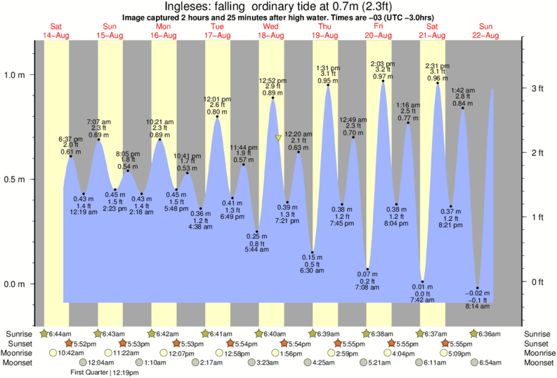 Image captured 2 hours and 25 minutes after high water (falling ordinary tide). Tide height was 0.7m (2.3 ft). Range 1.14m (3.7 ft). Toggle tide graph