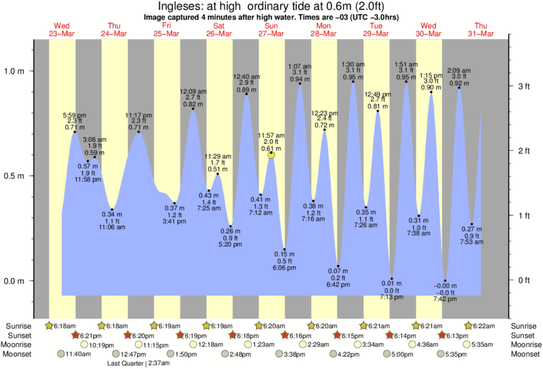 Forecast wind and swell just offshore from Ingleses around the time the photo was taken