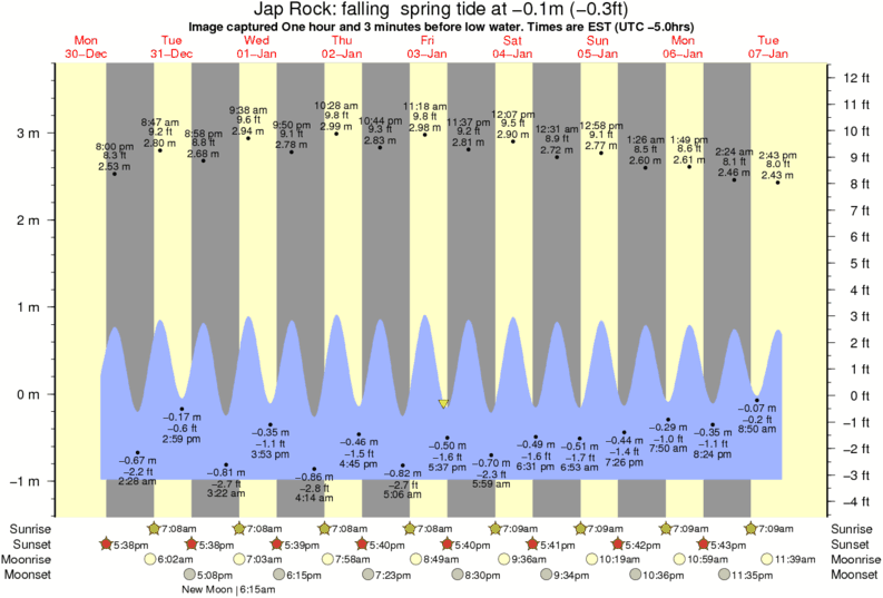 Image captured One hour and 3 minutes before low water (falling spring tide). Tide height was -0.1m (-0.3 ft). Range 4.35m (14.3 ft). Toggle tide graph