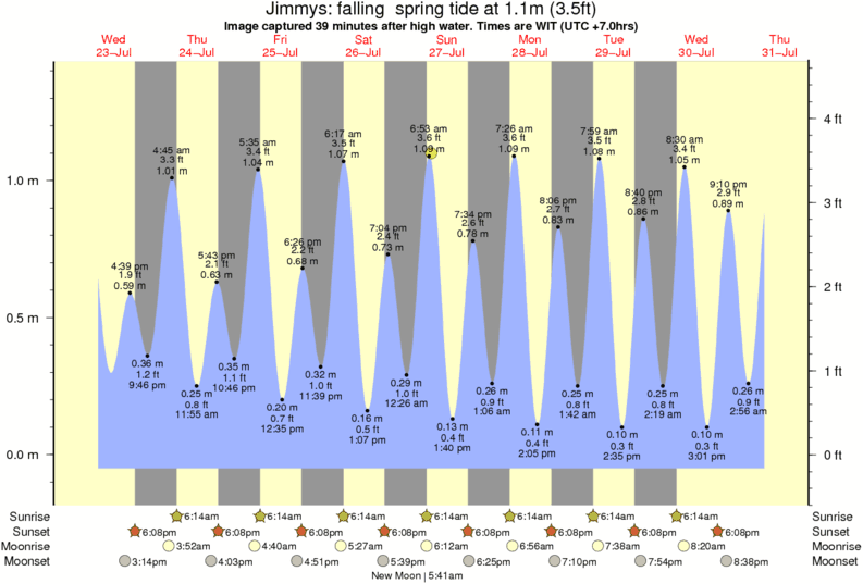 Image captured 39 minutes after high water (falling spring tide). Tide height was 1.1m (3.5 ft). Range 1.35m (4.4 ft). Toggle tide graph