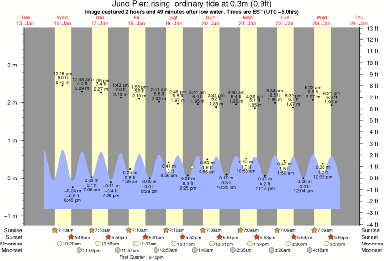 Image captured 2 hours and 49 minutes after low water (rising ordinary tide). Tide height was 0.3m (0.9 ft). Range 4.36m (14.3 ft). Toggle tide graph