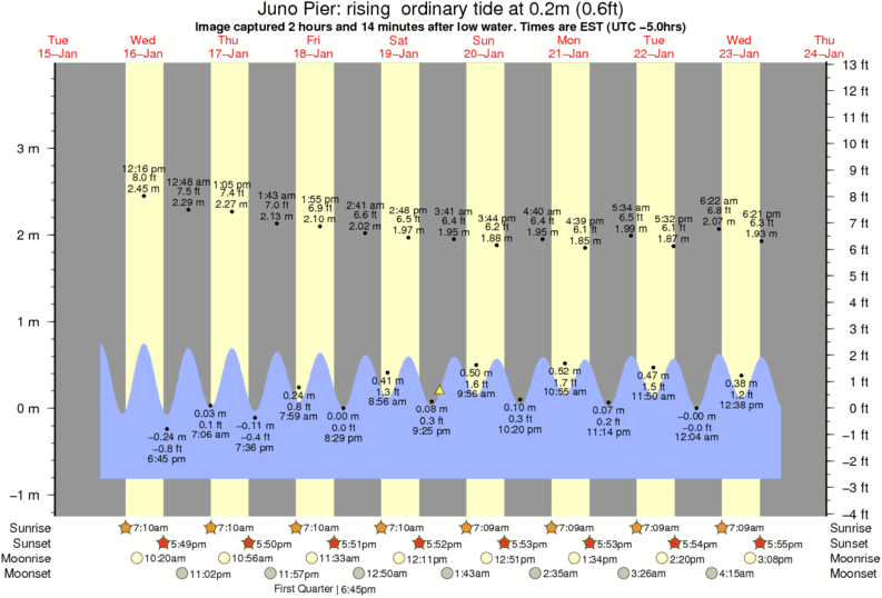 Image captured 2 hours and 14 minutes after low water (rising ordinary tide). Tide height was 0.2m (0.6 ft). Range 4.36m (14.3 ft). Toggle tide graph