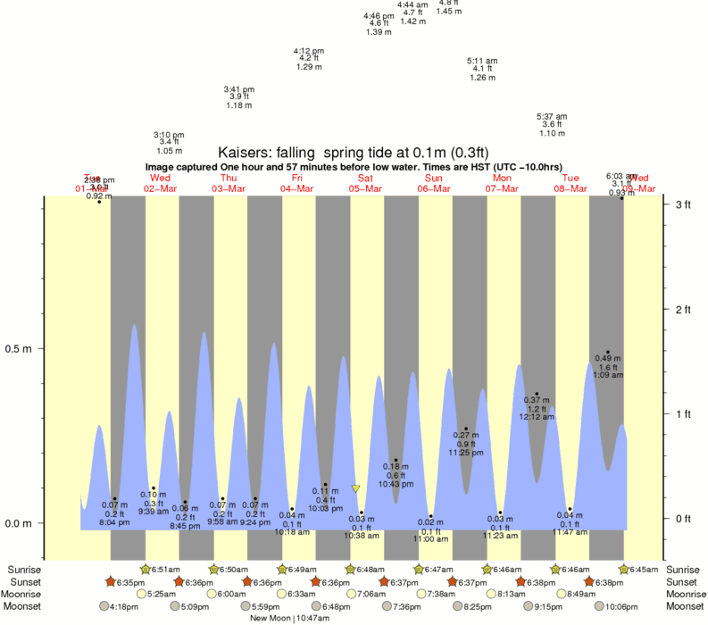 Image captured One hour and 57 minutes before low water (falling spring tide). Tide height was 0.1m (0.3 ft). Range 0.87m (2.9 ft). Toggle tide graph