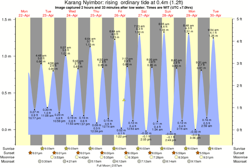 Image captured 2 hours and 33 minutes after low water (rising ordinary tide). Tide height was 0.4m (1.2 ft). Range 1.45m (4.8 ft). Toggle tide graph