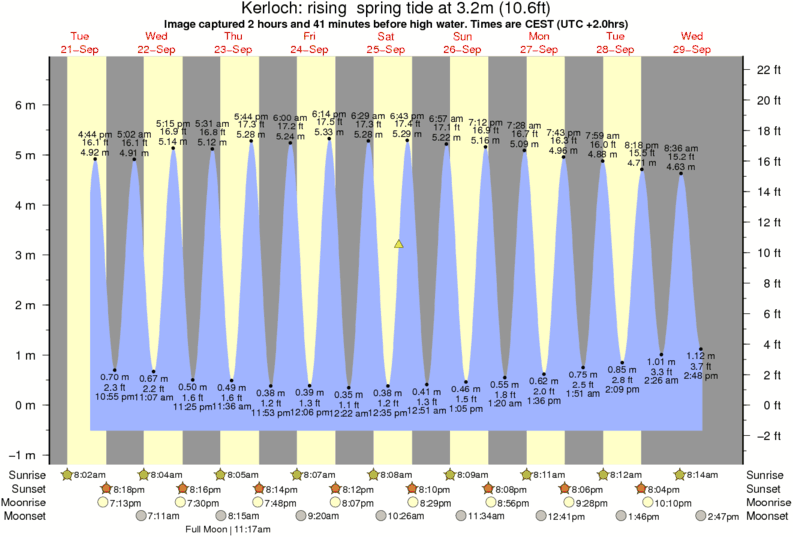 Image captured 2 hours and 41 minutes before high water (rising spring tide). Tide height was 3.2m (10.6 ft). Range 6.80m (22.3 ft). Toggle tide graph