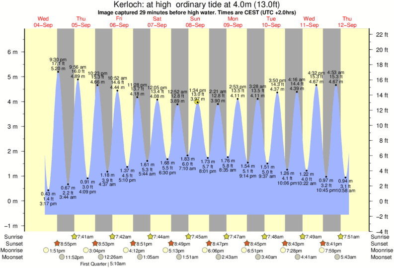 Image captured 29 minutes before high water (at high ordinary tide). Tide height was 4.0m (13.0 ft). Range 6.81m (22.3 ft). Toggle tide graph