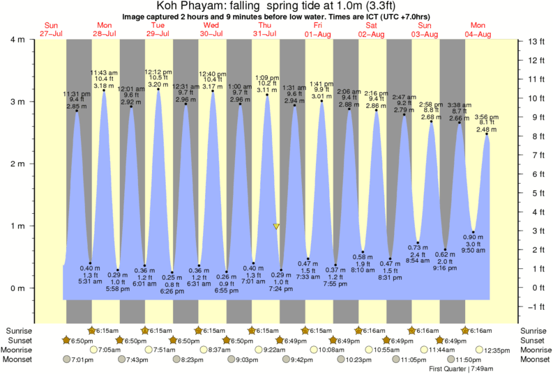Image captured 2 hours and 9 minutes before low water (falling spring tide). Tide height was 1.0m (3.3 ft). Range 3.81m (12.5 ft). Toggle tide graph