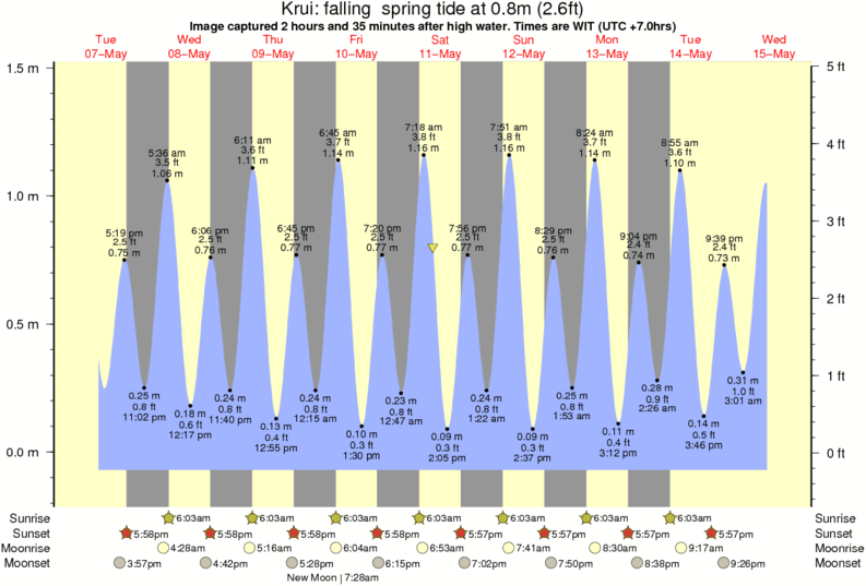 Image captured 2 hours and 35 minutes after high water (falling spring tide). Tide height was 0.8m (2.6 ft). Range 1.45m (4.8 ft). Toggle tide graph