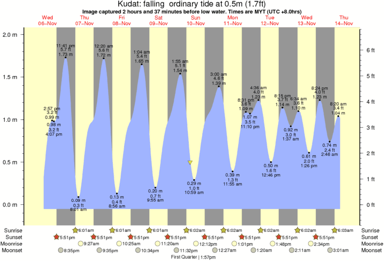 Image captured 2 hours and 37 minutes before low water (falling ordinary tide). Tide height was 0.5m (1.7 ft). Range 1.94m (6.4 ft). Toggle tide graph