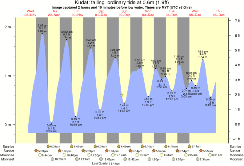 Image captured 2 hours and 16 minutes before low water (falling ordinary tide). Tide height was 0.6m (1.9 ft). Range 2.15m (7.1 ft). Toggle tide graph
