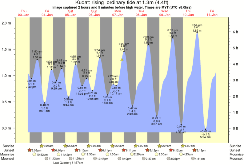 Forecast wind and swell just offshore from Kudat (Pantai Kosuhui) around the time the photo was taken