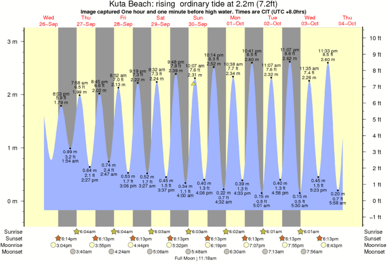 Forecast wind and swell just offshore from Kuta Beach around the time the photo was taken