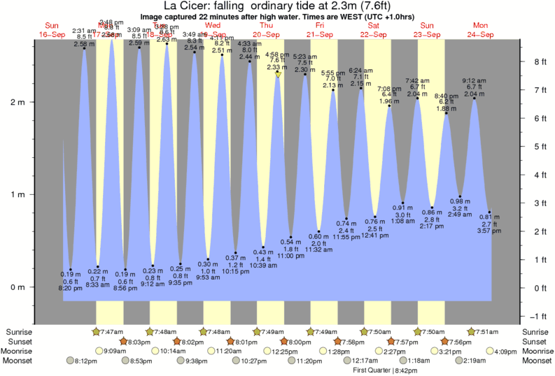 Image captured 22 minutes after high water (falling ordinary tide). Tide height was 2.3m (7.6 ft). Range 2.57m (8.4 ft). Toggle tide graph