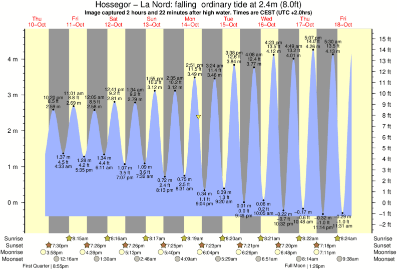 Image captured 2 hours and 22 minutes after high water (falling ordinary tide). Tide height was 2.4m (8.0 ft). Range 4.75m (15.6 ft). Toggle tide graph
