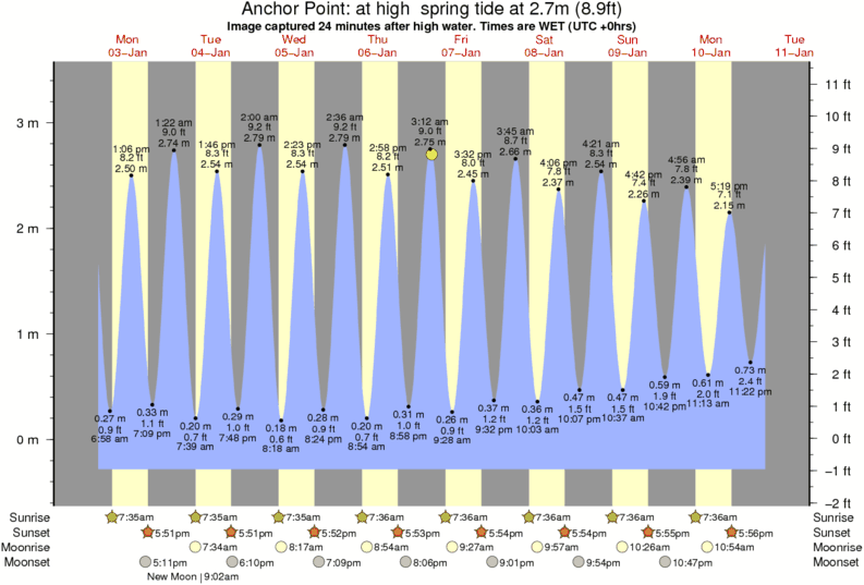 Image captured 24 minutes after high water (at high spring tide). Tide height was 2.7m (8.9 ft). Range 3.51m (11.5 ft). Toggle tide graph