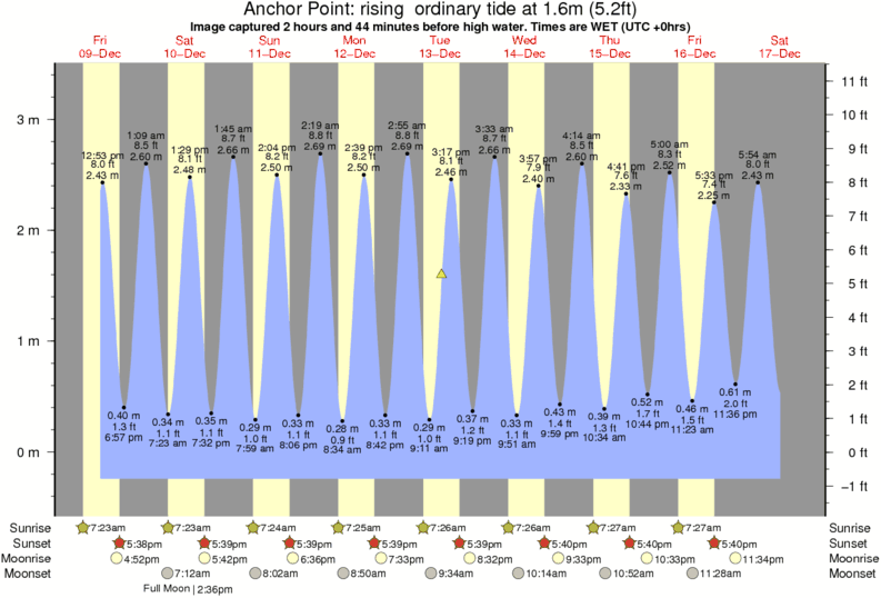 Image captured 2 hours and 44 minutes before high water (rising ordinary tide). Tide height was 1.6m (5.2 ft). Range 3.41m (11.2 ft). Toggle tide graph