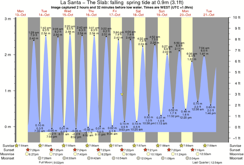 Image captured 2 hours and 32 minutes before low water (falling spring tide). Tide height was 0.9m (3.1 ft). Range 2.90m (9.5 ft). Toggle tide graph
